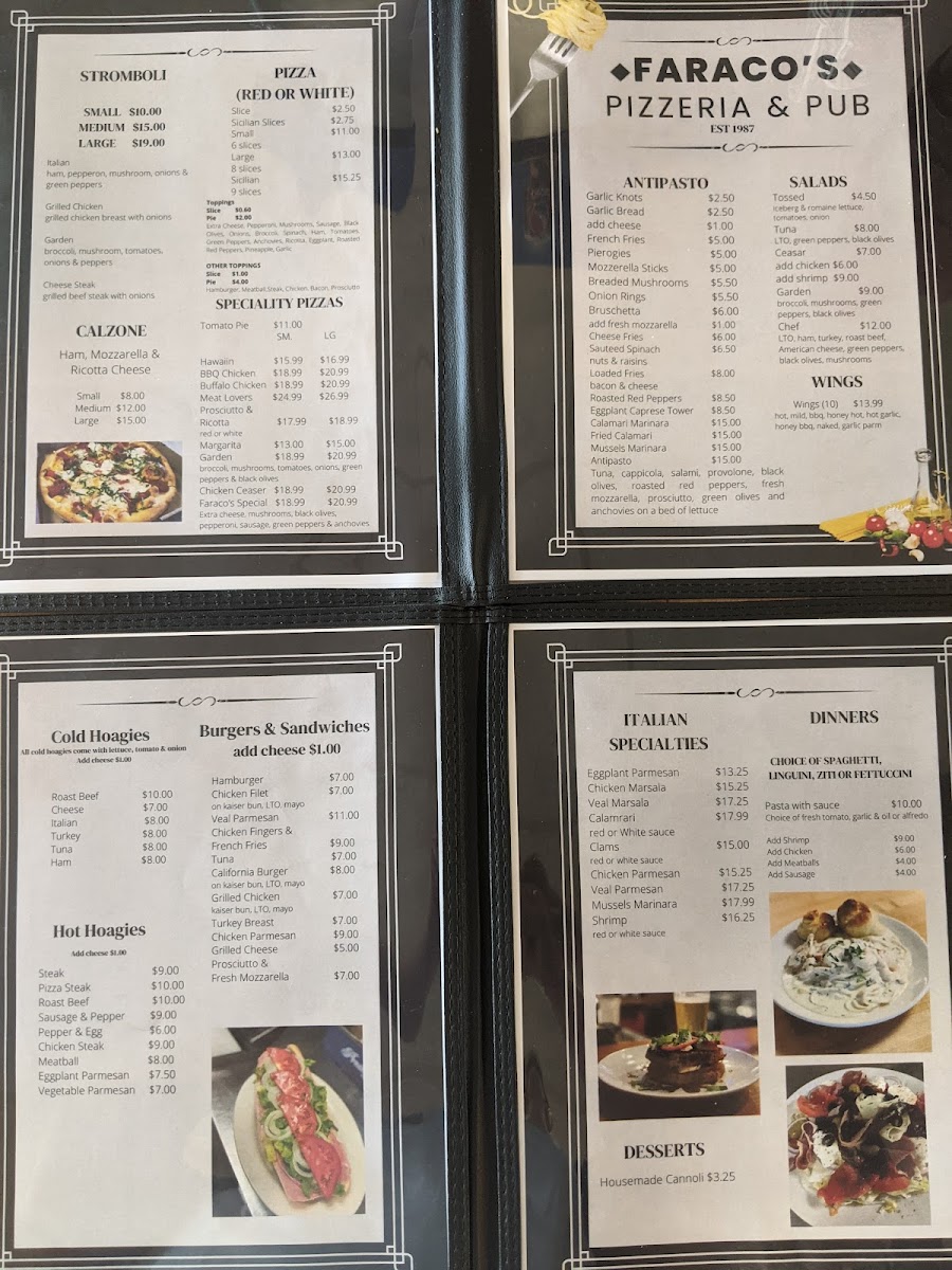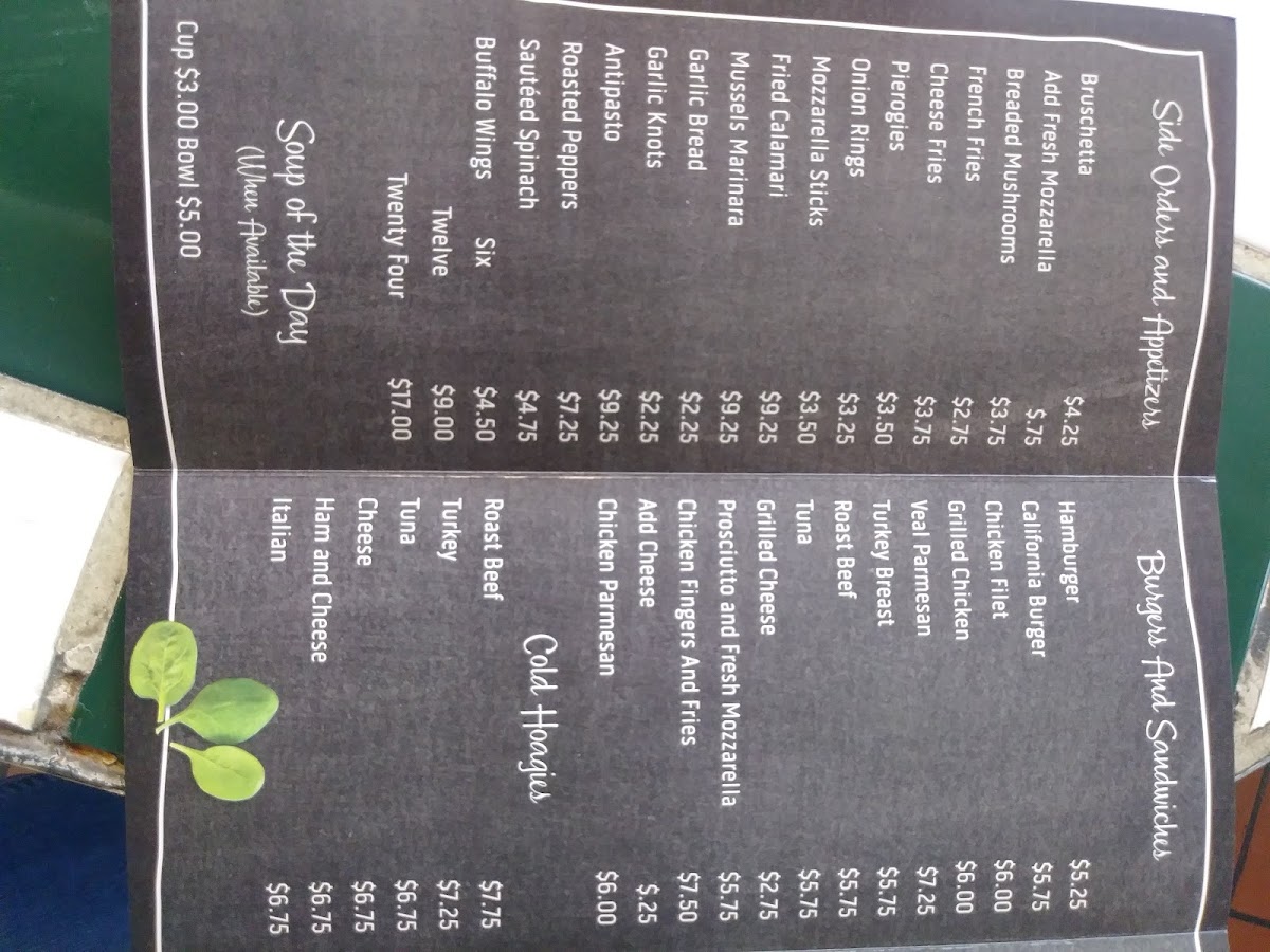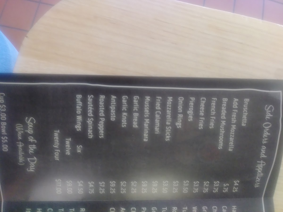 Meatballs, Sausage, Garlic & Oil, Clams (Red-White), Calamari (Red-White), Broccoli